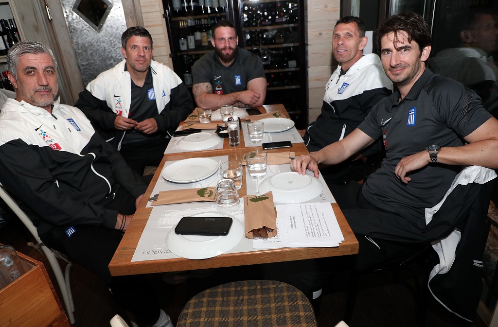 Η αποστολή της Εθνικής Ελλάδας βρίσκεται ήδη στον Βόλο και πραγματοποίησε ήδη την πρώτη της προπόνηση στο γήπεδο της Πορταριάς, για να ακολουθήσει στη συνέχεια γεύμα σε εστιατόριο του Βόλου.