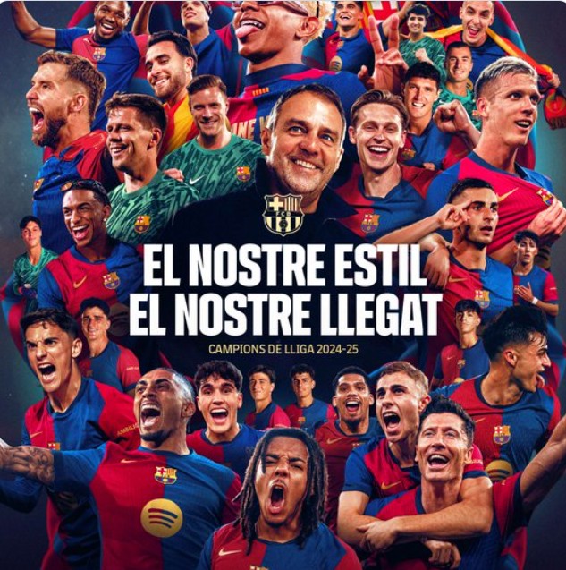 Η Ρεάλ Μαδρίτης παρέδωσε τα σκήπτρα της στην Μπαρτσελόνα. Χάρη στα τέρματα των Λαμίν Γιαμάλ (54′) και Φερμίν Λόπεθ (90′) η ομάδα του Χάνσι Φλικ επικράτησε το βράδυ της Πέμπτης (15/5) εκτός έδρας κόντρα στην Εσπανιόλ με 2-0 για την 36η αγωνιστική της La Liga και στέφθηκε πρωταθλήτρια για 28η φορά στην ιστορία της, αφού με δύο αγωνιστικές να απομένουν απέκτησε διαφορά επτά βαθμών από τη Ρεάλ Μαδρίτης (85-78).