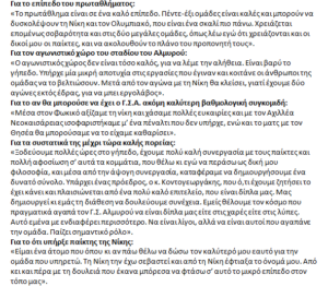 Ο 39χρονος τεχνικός φιλοξενήθηκε στην εκπομπή Clasico του Βόλος 9.86 και εκτός των άλλων τόνισε σε ερώτηση για το αν η ομάδα του θα μπορούσε να κυνηγήσει τη δεύτερη θέση ότι η Νίκη και ο Ολυμπιακός είναι οι ομάδες που δικαιούνται ν’ ανέβουν κατηγορία.