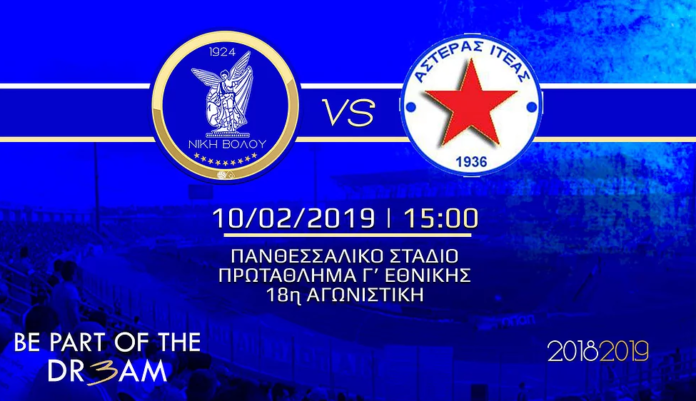 “Η Δ.Ε. Ποδοσφαίρου της Νίκης Βόλου 1924 ενημερώνει για τις τιμές των εισιτηρίων και τη διαδικασία εισόδου των φιλάθλων στο Πανθεσσαλικό Στάδιο για τον αγώνα Νίκη Βόλου – Αστέρας Ιτέας για την 18η αγωνιστική του 4ου Ομίλου της Γ’ Εθνικής 2018-2019, την Κυριακή 10 Φεβρουαρίου 2019 στις 15:00.