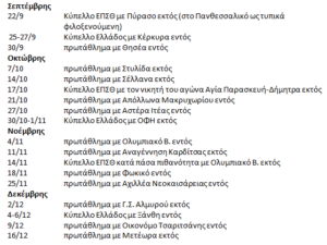 Ειδικά για το διάστημα 17 Οκτώβρη-14 Νοέμβρη οι κυανόλευκοι οφείλουν να δώσουν επτά παιχνίδια. Μάλιστα λίγες μέρες πριν το μεγάλο ντέρμπι με τον Ολυμπιακό Βόλου στις 4 Νοεμβρίου, θα πρέπει η ομάδα του Φάντζιο Μπούις να ταξιδέψει στο Ηράκλειο για την αναμέτρηση με τον ΟΦΗ. Αναλυτικά το πρόγραμμα της Νίκης μέχρι τις 16 Δεκέμβρη, όταν γίνεται η 12η αγωνιστική της Γ’ Εθνικής και τελευταία χρονικά μέσα στο 2018: