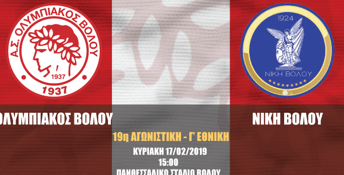 “Η Διοίκηση του Α.Σ. Ολυμπιακός Βόλου 1937 καλεί όλο το φίλαθλο κόσμο την Κυριακή 17 Φεβρουαρίου 2019, στις 15:00, στο Πανθεσσαλικό Στάδιο Βόλου, όπου η ομάδα μας θα αντιμετωπίσει για την 19η αγωνιστική του πρωταθλήματος Γ’ Εθνικής την Νίκη Βόλου. Οι τιμές εισιτηρίων ανά κατηγορία είναι οι εξής: