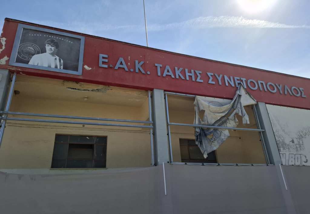 Ντροπιαστική είναι η εικόνα του ΕΑΚ Βόλου, που φέρει το όνομα του τεράστιου Τάκη Συνετόπουλου, τη μνήμη του οποίου προσβάλλουν, αφήνοντας το ιστορικό στάδιο σε μαύρο χάλι τα τελευταία χρόνια.