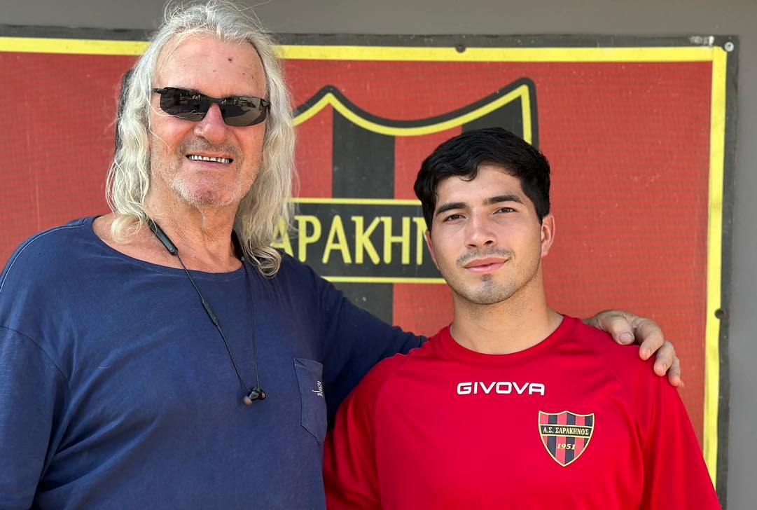 Στη φωτογραφία το νέο απόκτημα του Σαρακηνού δίπλα στον παλαίμαχο ποδοσφαιριστή της ομάδας μας Κώστα Κολέτσο.