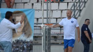 Σειρά μετά απ’ όλ αυτά είχε ο αγιασμός, οι ομιλίες των κ.κ. Φάτση, Ιμεράι, Βενέτη και το σύντομο εσωτερικό διπλό (χωρίς φυσικά τον Χρήστο Τζιώρα), με τον κόσμο να χειροκροτεί όλους τους ποδοσφαιριστές και σε κάποια στιγμή ιδιαίτερα Μακενγκό, που έδειξε ότι το κύριο προσόν του είναι η ταχύτητα.