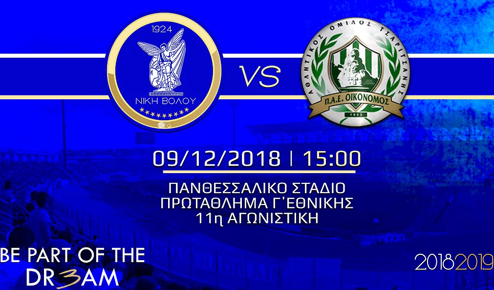 “Η Δ.Ε. Ποδοσφαίρου της Νίκης Βόλου 1924 ενημερώνει για τις τιμές των εισιτηρίων και τη διαδικασία εισόδου των φιλάθλων στο Πανθεσσαλικό Στάδιο για τον αγώνα Νίκη Βόλου – Οικονόμος Τσαριτσάνης για την 11η αγωνιστική του 4ου Ομίλου της Γ’ Εθνικής 2018-2019, την Κυριακή 9 Δεκεμβρίου 2018 στις 15:00.