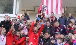 Ημέρα χαράς η σημερινή για τον Ολυμπιακό Βόλου, αφού με τον βαθμό της ισοπαλίας στο ματς με τον Γ.Σ. Αλμυρού αναδείχθηκε πρωταθλητής του 4ου ομίλου της Γ’ Εθνικής. Στους ερυθρολεύκους έγινε απονομή Κυπέλλου σε μία γιορτή που διοργάνωσε η διοίκηση, με τον Ανδρέα Τσεκούρα να δίνει το Κύπελλο στον αρχηγό Στάθη Ρόκα, ενώ η αντιπεριφερειάρχης Δωροθέα Κολυνδρίνη απένειμε μετάλλια στον καθένα από τους ποδοσφαιριστές και το τεχνικό team. Ο Ανδρέας Κικίλιας εκφώνησε ένα-ένα τα ονόματα όλων, όπως και των διοικούντων της εκτελεστικής επιτροπής ποδοσφαίρου.