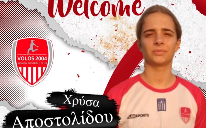 Τη μεταγραφή Νο 5 ολοκλήρωσε ο Βόλος 2004, με την απόκτηση της 18χρονης αριστερής μπακ-χαφ Χρύσας Αποστολίδου.