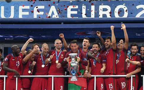 Η Πορτογαλία είναι η νέα πρωταθλήτρια Ευρώπης, αφού ούτε ο τραυματισμός και η αποχώρηση του φυσικού ηγέτη της μόλις στο 25ο λεπτό στάθηκε ικανός να λυγίσει το αδάμαστο πνεύμα που έχει εμφυσήσει στο ιβηρικό συγκρότημα ο Φερνάντο Σάντος.