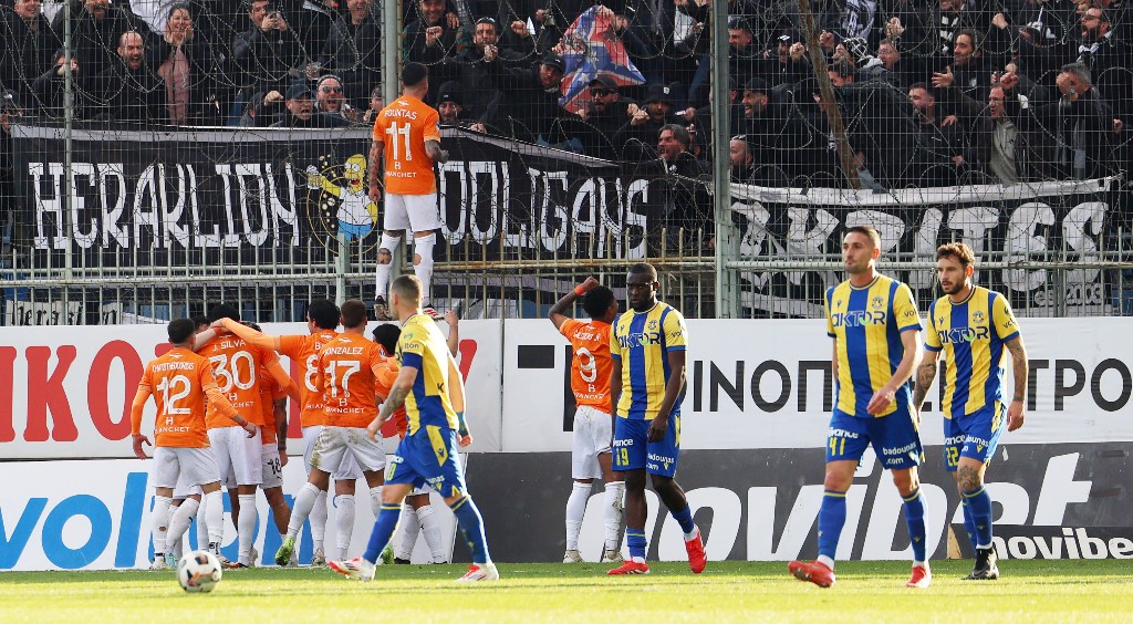Ο ΟΦΗ ήταν αυτός που μπήκε μπροστά στο σκορ στο 24’. Ο Γκονθάλεθ εκτέλεσε φάουλ από τα δεξιά, ο Τζόρνταν Σίλβα στο πίσω δοκάρι έκανε το γύρισμα, ο Παπαδόπουλος απέκρουσε στην προσπάθειά του να μη φτάσει η μπάλα στον Σαλσέδο, που καιροφυλακτούσε, και ο Φούντας από κοντά, παίρνοντας το ριμπάουντ, έκανε το 0-1, ανεβαίνοντας στα κάγκελα της κερκίδας και πανηγυρίζοντας με τους φίλους του ΟΦΗ! Το γκολ μέτρησε μετά από εξέταση του VAR για οφσάιντ.