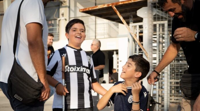 Οι δύο πιο γνωστοί φίλαθλοι του ΠΑΟΚ, ο 13χρονος Γιαννάκης Παπαστεφανάκης, που έχει κινητικά προβλήματα, και ο 12χρονος Λέανδρος Παπαχαραλαμπίδης, που έχει χάσει την όρασή του από δυόμισι ετών, συναντήθηκαν λίγο πριν το ταξίδι του πρώτου στην Αμερική, όπου θα υποβληθεί σε λεπτή επέμβαση, ώστε να περπατήσει ξανά, με την ΠΑΕ ΠΑΟΚ να έχει αναλάβει όλα τα έξοδα νοσηλείας.