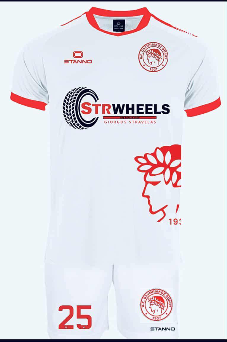 Αφού στο ΤΕΕ στις 22 Αυγούστου είχε αποκαλύψει την κλασική ερυθρόλευκη εμφάνιση με ρίγες που θα φορούν φέτος οι παίκτες του Ολυμπιακού Βόλου, ο Σάκης Τζήμας αποκάλυψε μέσω social media και άλλη μία εμφάνιση, που είναι ολόλευκη με κόκκινες λεπτομέρειες και με τον δαφνοστεφανωμένο έφηβο στο κάτω μέρος της φανέλας στο πλάι.