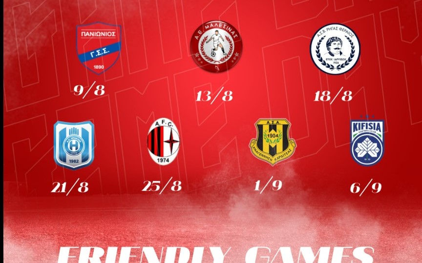 Οριστικοποιήθηκαν οι ημερομηνίες των φιλικών με Μαλεσίνα, Αστέρα Σταυρού και Αναγέννηση Καρδίτσας για τον Ολυμπιακό Βόλου, ενώ οι ερυθρόλευκοι πρόσθεσαν και ένα ακόμη φιλικό στο πρόγραμμά τους, αυτό με τον Ρήγα Φεραίο στις 18 Αυγούστου.