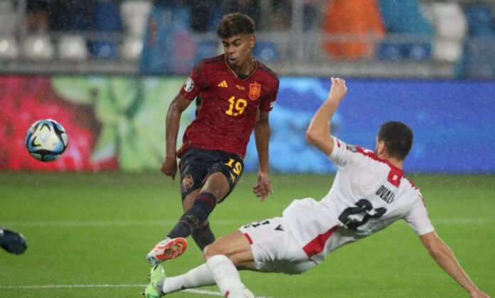 Ο Λαμίν Γιαμάλ πραγματοποίησε το ντεμπούτο του με την Εθνική Ισπανίας, με τον εξτρέμ της Μπαρτσελόνα μάλιστα να σκοράρει το τελευταίο γκολ της ομάδας στο επιβλητικό 1-7 απέναντι στη Γεωργία την Παρασκευή (8/9) στο 74ο λεπτό.