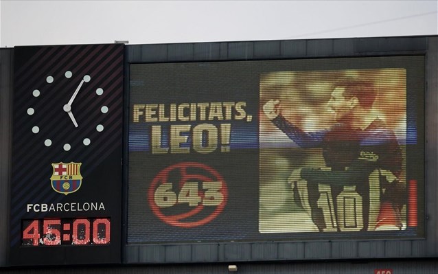 Χάρη στο γκολ που σημείωσε στις καθυστερήσεις του πρώτου ημιχρόνου, ο 33χρονος Αργεντινός σταρ έφτασε τα 643 τέρματα με τη φανέλα της Μπαρτσελόνα σε επίσημα παιχνίδια, ισοφαρίζοντας το ρεκόρ του Πελέ για τα γκολ με μια ομάδα.