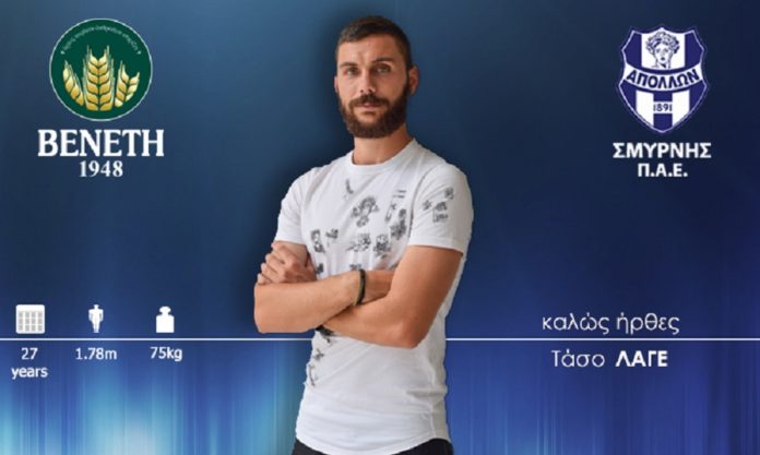 Ο 27χρονος Αλμυριώτης χαφ, Τάσος Λαγός, ο οποίος έχει αγωνιστεί σε Ερμή Αραδίππου, Λάρισα, Παναθηναϊκό και Βίρτσμπουργκερ Κίκερς αποτελεί πλέον επίσημα παίκτη του Απόλλωνα Σμύρνης, που έχει ως μοναδικό στόχο την άνοδο από τη Super League 2 στη Super League 1.