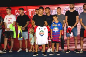 Ακολούθησε η παρουσίαση των μεταγραφών της ομάδας και αμέσως μετά ο Δήμαρχος Βόλου και πρόεδρος της κυανέρυθρης ΠΑΕ στον χαιρετισμό του επισήμανε ότι η ομάδα του ήρθε στη Σούπερ Λιγκ, για να μείνει και σ’ αυτό θα παίξει ρόλο ο κόσμος και οι επιχειρηματίες της ευρύτερης περιοχής. Χαρακτήρισε επίσης εαυτόν προσωρινό πρόεδρο, αφού έχει την επιθυμία να βρεθεί ένας υγιής παράγοντας ή μία ομάδα επιχειρηματιών ν’ αναλάβουν την ομάδα και ευχήθηκε να βρεθεί αντικαταστάτης του.