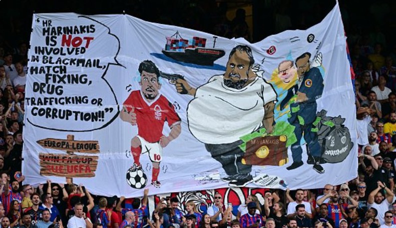 Το παιχνίδι μεταξύ της Κρίσταλ Πάλας και της Νότιγχαμ Φόρεστ ήταν ένα από τα δύο κυριακάτικα της 2ης αγωνιστικής της Premier League. Εκτός από τον αγωνιστικό χώρο, ενδιαφέρον υπήρξε και στις κερκίδες με ένα πανό που σήκωσαν οι φίλοι των γηπεδούχων, με κεντρικό πρόσωπο τον ιδιοκτήτη της αντιπάλου τους, Βαγγέλη Μαρινάκη.