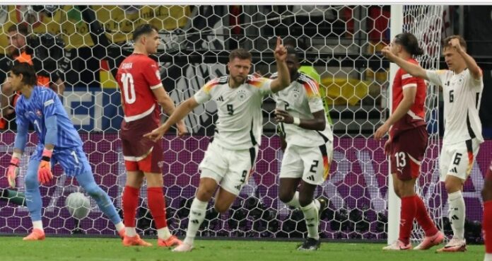 Η Γερμανία κατάφερε να ισοφαρίσει στις καθυστερήσεις σε 1-1 με τον Νίκλας Φίλκρουγκ την Ελβετία, που είχε προηγηθεί στο 28’ με τον Εντόι, στέλνοντας την «οικοδέσποινα» του Euro 2024 στην επόμενη φάση των νοκ άουτ ως πρώτη και αήττητη με επτά βαθμούς, όπως επίσης αήττητη μετά από τρεις αγώνες έμεινε και η ομάδα του Μουράτ Γιακίν με δύο ισοπαλίες και μία νίκη.