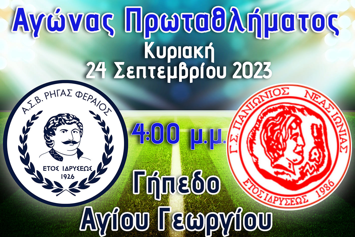 Με αξιώσεις για μία καλή πορεία μπαίνει στο φετινό πρωτάθλημα της Α’ ΕΠΣΘ ο Ρήγας Φεραίος, αντιμετωπίζοντας στο γήπεδο του Αγίου Γεωργίου τον Πανιώνιο Νέας Ιωνίας, την Κυριακή 24 Σεπτεμβρίου στις 16:00, και με το ΔΣ του συλλόγου να δίνει τις ευχές του για μία καλή ποδοσφαιρική χρονιά.