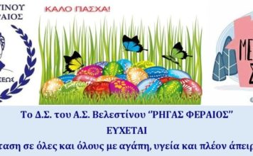 Α.Σ. Ρήγας Φεραίος: “Καλό Πάσχα και άπειρη υπομονή”