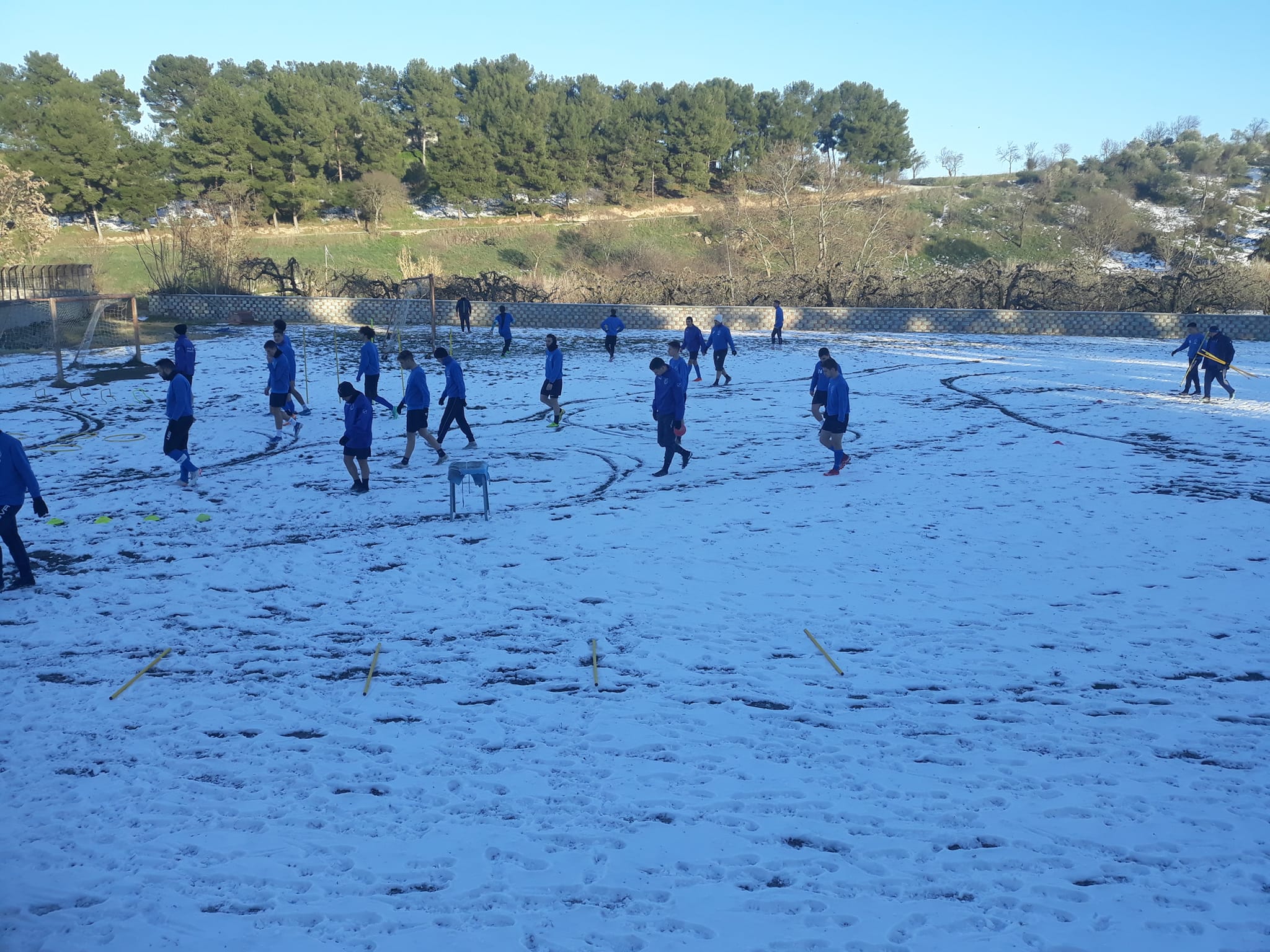 Άγνωστο αν ρίσκαραν οι παίκτες του Λάκη Μπακάλη, προπονήθηκαν σχεδόν σε κανονικούς ρυθμούς με το έδαφος να παραμένει καλυμμένο από το χιόνι που έπεσε και σ’ αυτήν την περιοχή την περασμένη Δευτέρα!