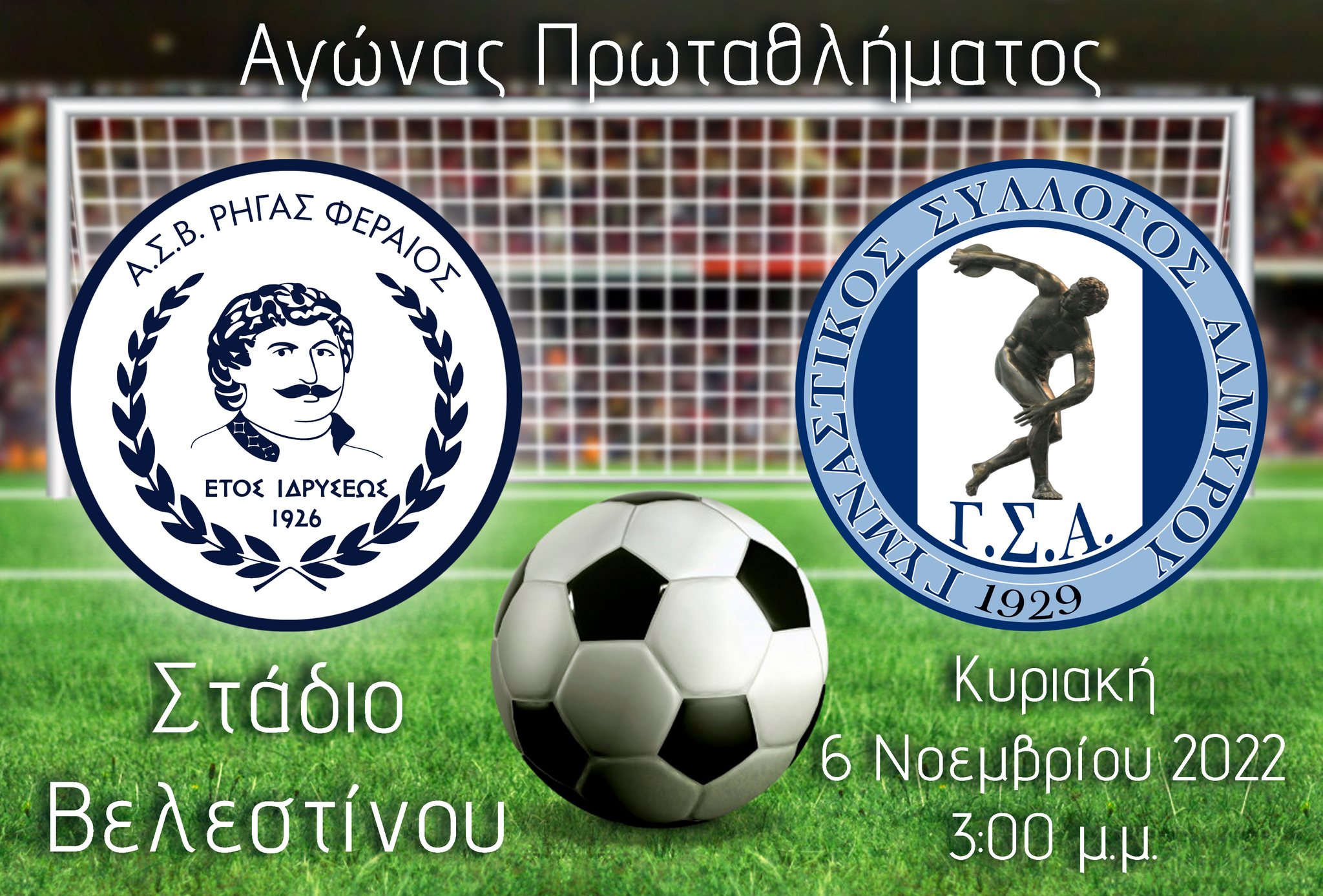 Μετά από δύο σερί εκτός έδρας ματς, ο Ρήγας Φεραίος θα φιλοξενήσει την ομάδα του ΓΣ Αλμυρού την ερχόμενη Κυριακή στο Δημοτικό στάδιο Βελεστίνου, καλώντας τους φίλους της ομάδας.