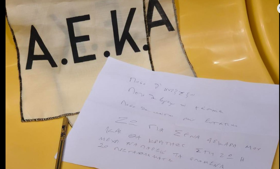 Η ανάρτηση του Μουσείου Ιστορίας της ΑΕΚ: «Αξίζει να γίνει ιδιαίτερη αναφορά σε ένα από τα δεκάδες νέα εκθέματα του Μουσείου Ιστορίας της ΑΕΚ. Πρόκειται για το συγκλονιστικό ιδιόγραφο σημείωμα, που έγραψε ο γνωστός δημοσιογράφος και ακραιφνής Ενωσίτης, Κώστας Χαρδαβέλλας, μέσα στην εντατική του νοσοκομείου, λίγο πριν αφήσει την τελευταία του πνοή, τον Δεκέμβριο του 2024: