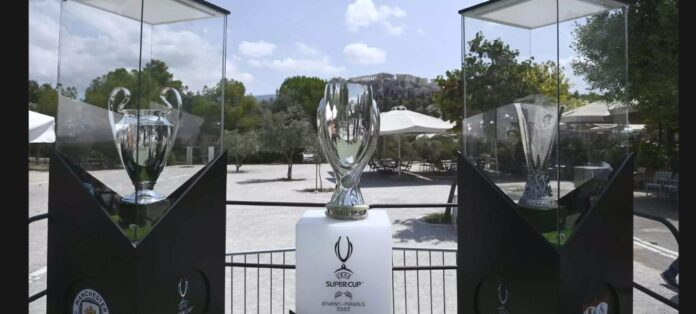 Στο Θησείο με αφορμή τον τελικό του Ευρωπαϊκού Super Cup βρίσκονται τα τρόπαια του Champions και Europa League που κατέκτησαν η Μάντσεστερ Σίτι και η Σεβίλλη αντίστοιχα, καθώς στο «Καραϊσκάκης» την Τετάρτη (16/8) θα πραγματοποιηθεί ο τελικός του Super Cup, ανάμεσα στην κάτοχο του Champions League Μάντσεστερ Σίτι και τη Σεβίλλη, η οποία πήρε το Europa.