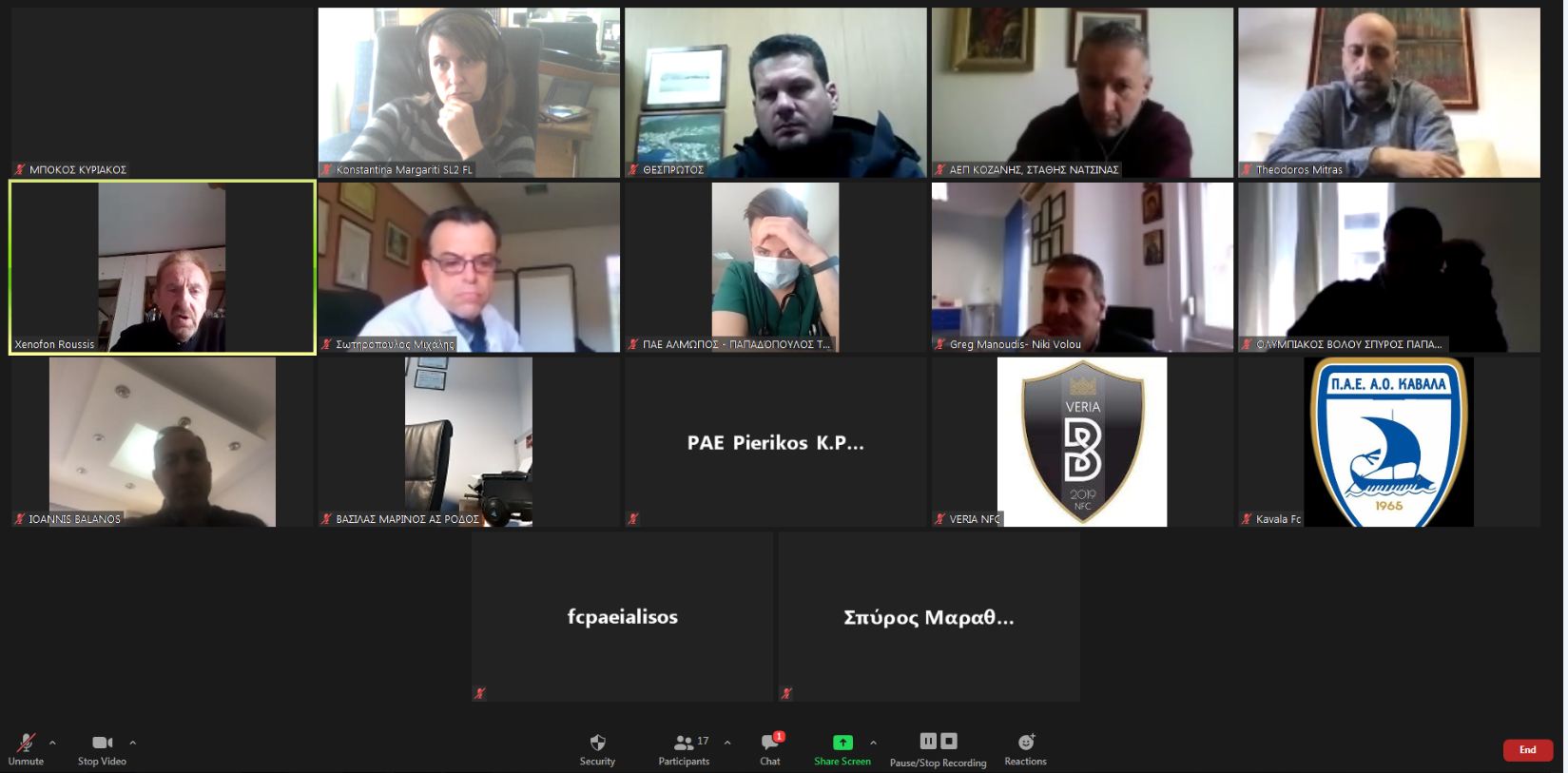 Όπως ήταν προγραμματισμένο, σήμερα Τρίτη η τηλεδιάσκεψη του προέδρου της Υγειονομικής Επιτροπής Super League 2 – Football League Ξενοφώντα Ρούσση με τους υγειονομικούς υπεύθυνους των ομάδων της Football League.