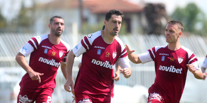 Οι Λαρισαίοι μπήκαν στο γήπεδο της Χαλάστρας στη Θεσσαλονίκη με μοναδικό στόχο τη νίκη απέναντι στον Καμπανιακό, με το τελικό 2-1 να τους εξασφαλίζει και μαθηματικά την άνοδο στα μεγάλα σαλόνια του ελληνικού ποδοσφαίρου.