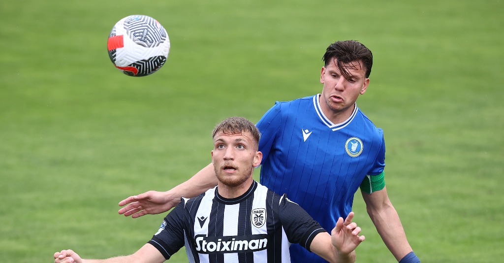 30’ ο Τσέλιος μπλόκαρε χωρίς ιδιαίτερα προβλήματα την κεφαλιά του Λαγωνίδη