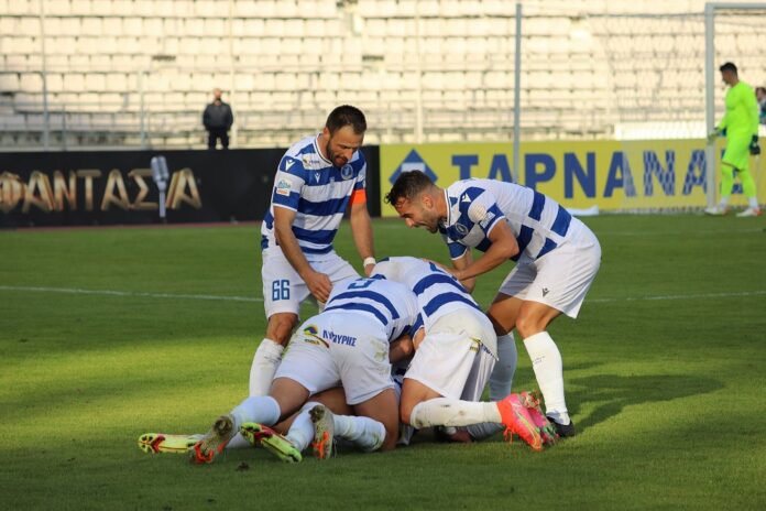 Η Νίκη ευτύχησε μόλις στο 8’ να αποκτήσει αριθμητικό πλεονέκτημα, μετά την ανατροπή του Ροχάνο από τον Γιαλαμίδη, όταν ο Αργεντινός επιθετικός έμπαινε μόνος του στην περιοχή του Πιερικού, με τον κεντρικό αμυντικό της ομάδας της Κατερίνης να τον μαρκάρει αντικανονικά και τον διαιτητή Μπεκιάρη να τον αποβάλει με απ’ ευθείας κόκκινη, ως τελευταίος. Από το σημείο εκείνο και έπειτα οι «κυανόλευκοι» πίεσαν για να πετύχουν το τέρμα που θα τους έδινε το αβαντάζ για τη συνέχεια κι έχασαν ευκαιρίες μέχρι να το πετύχουν. Στο 25’ ο Πάνος θα στρώσει στον Ροχάνο στο ύψος της μικρής περιοχής, με τον Αργεντινό να μην βρίσκει …αέρα και να σπαταλάει την ευκαιρία να ανοίξει το σκορ. Δύο λεπτά αργότερα ο Τσουκαλάς από πλεονεκτική θέση έπιασε την κεφαλιά, αλλά η μπάλα θα καταλήξει άουτ. Ό,τι δεν κατάφεραν οι παίκτες του Αλέκου Βοσνιάδη στις προηγούμενες φάσεις το έκανε -με μονοκόμματο σουτ από την μεγάλη περιοχή- του Λούκας Γκαρσία στο 33’, μετά από πάσα του Ροχάνο.