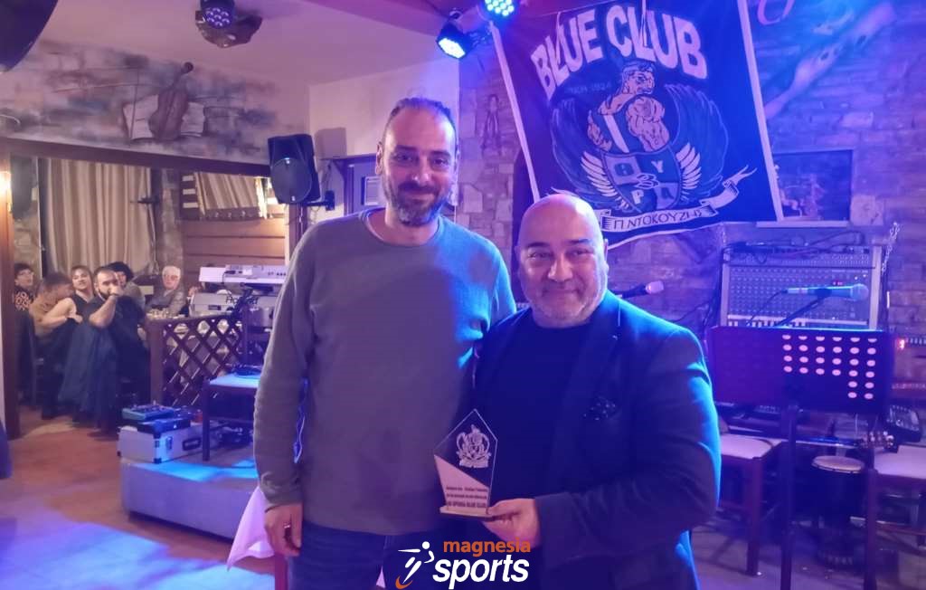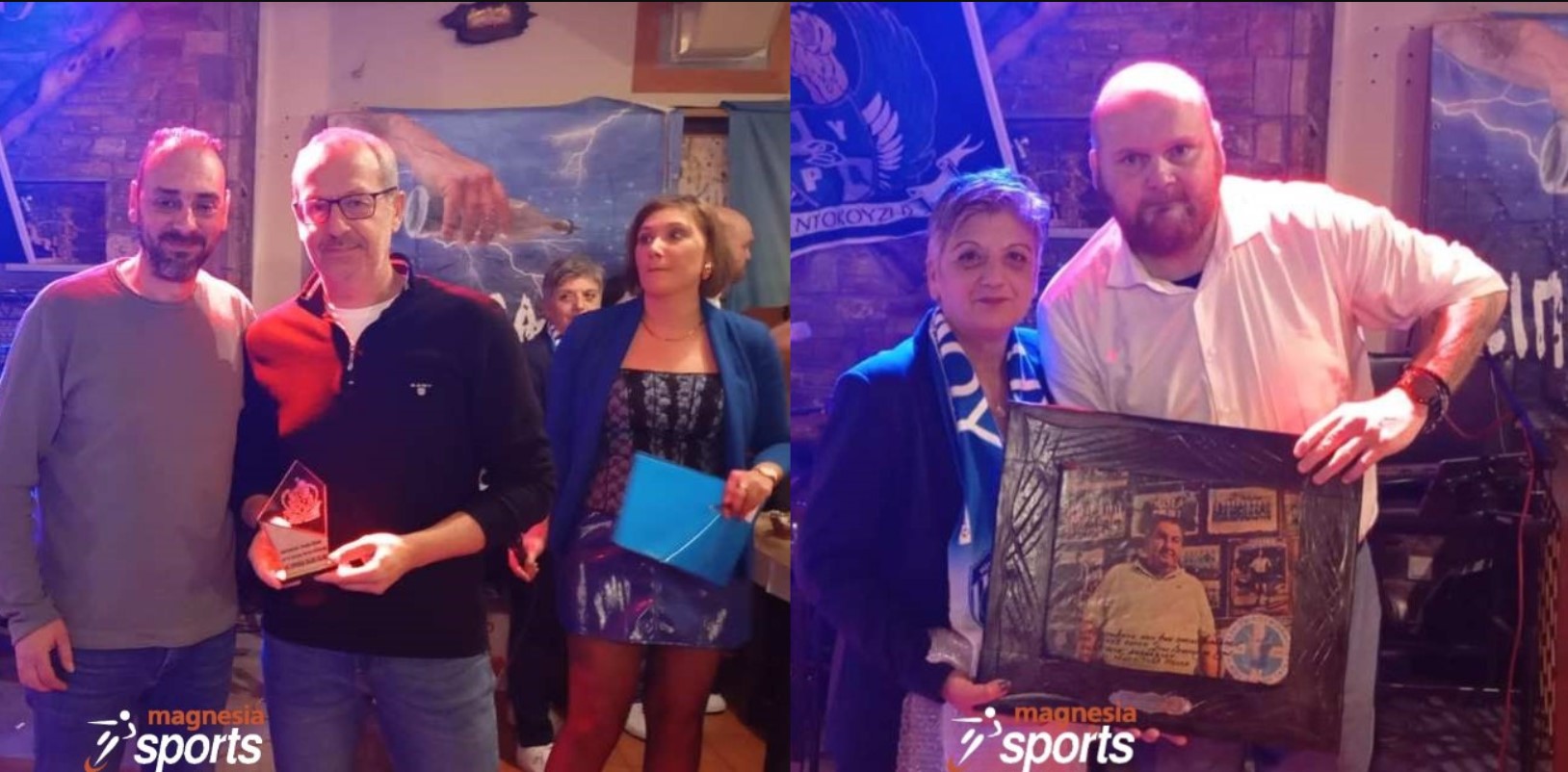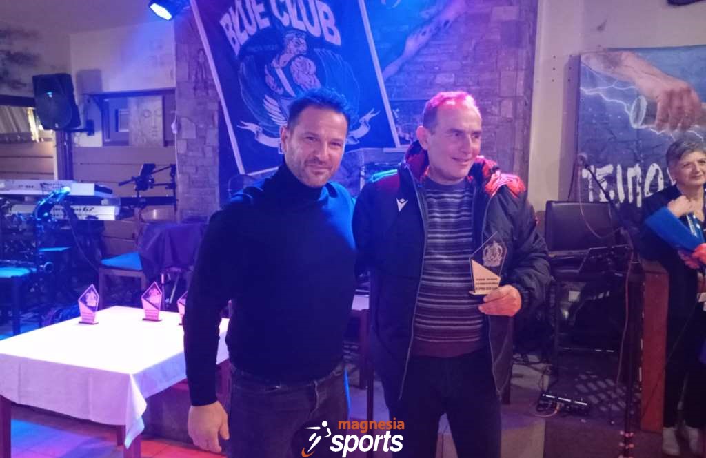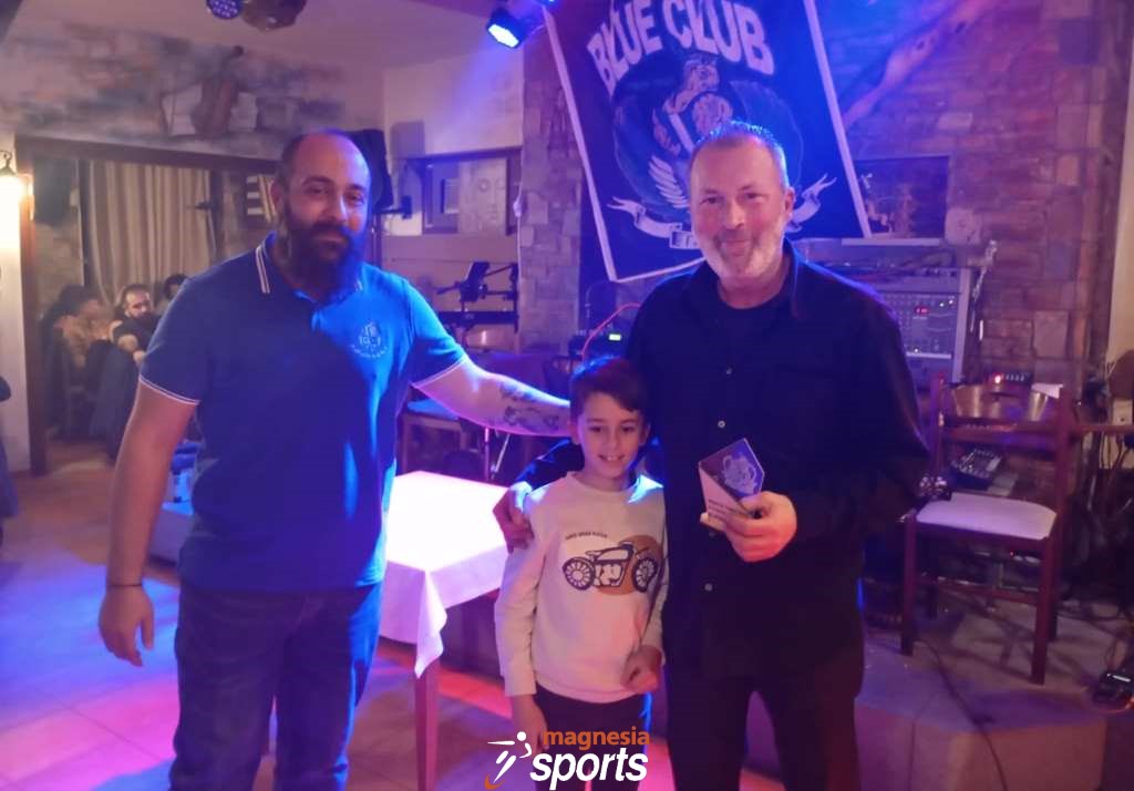 -Ο παλιός πρόεδρος του Blue Club Γιώργος Τσιοπράς, που ήταν ο πρώτος πρόεδρος του Συνδέσμου και πλέον μαθαίνει στον γιο του Αλέξανδρο τι σημαίνει ΝΙΚΗ ΒΟΛΟΥ. Τη βράβευση έκανε ο πρόεδρος του συνδέσμου Παντελής Μαστρογιάννης.