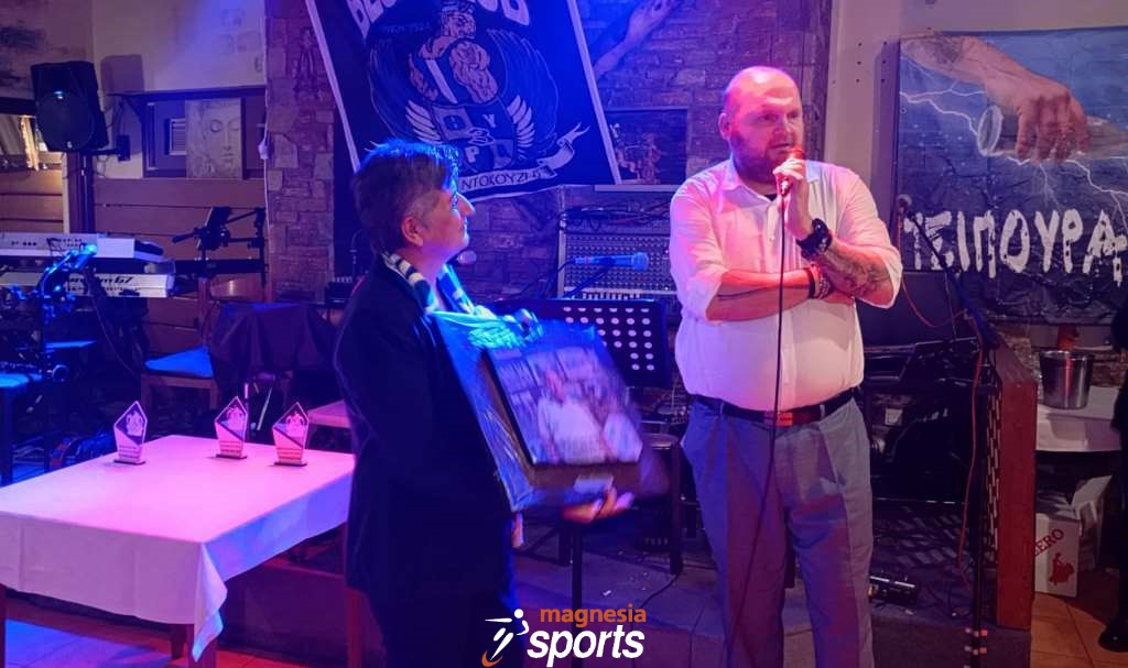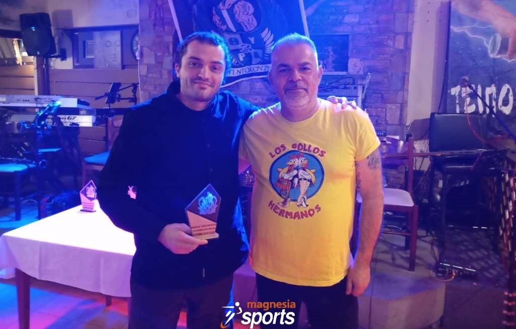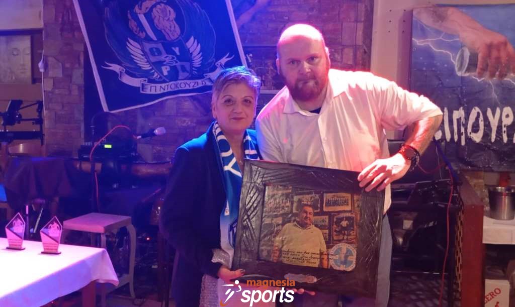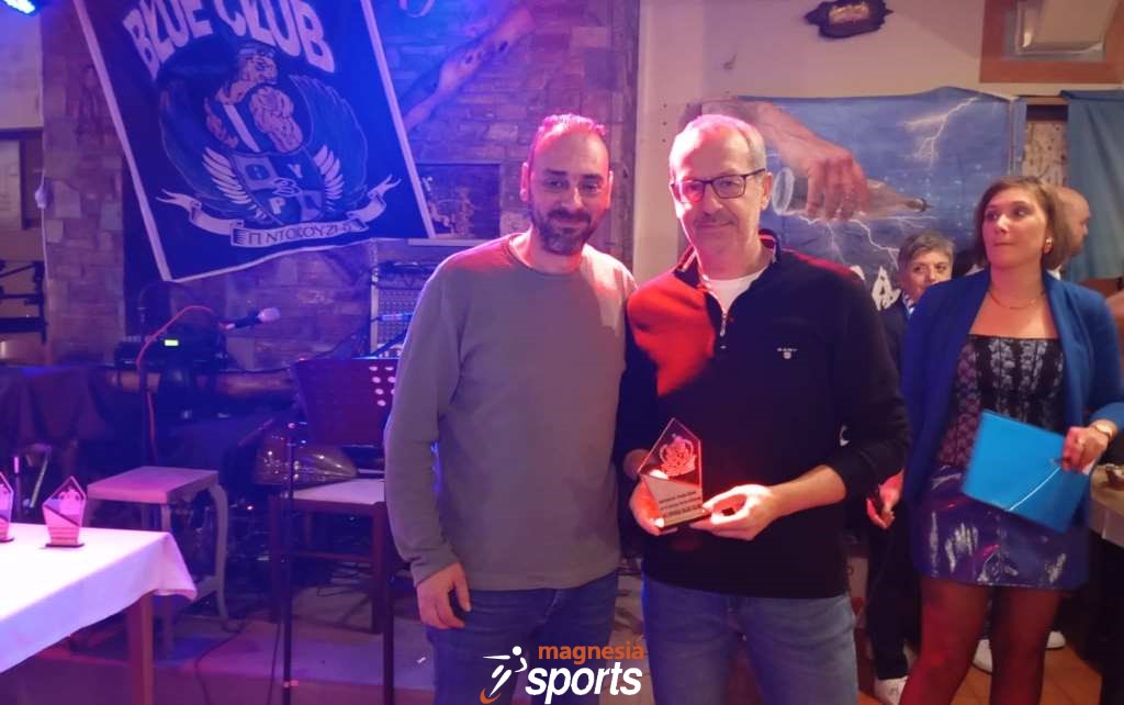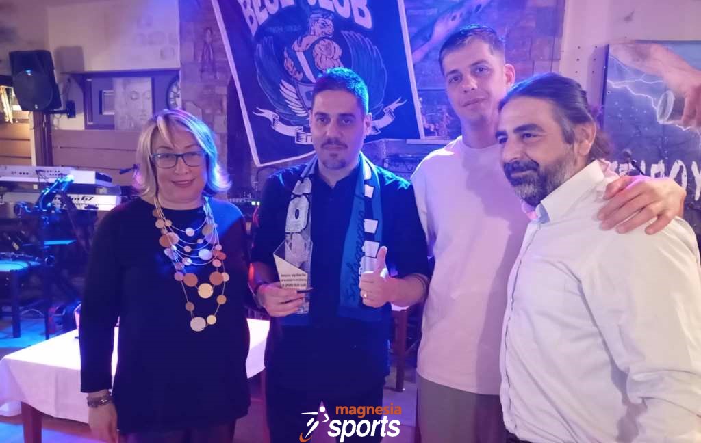 -Ο παλιός πρόεδρος του Blue Club Γιώργος Τσιοπράς, που ήταν ο πρώτος πρόεδρος του Συνδέσμου και πλέον μαθαίνει στον γιο του Αλέξανδρο τι σημαίνει ΝΙΚΗ ΒΟΛΟΥ. Τη βράβευση έκανε ο πρόεδρος του συνδέσμου Παντελής Μαστρογιάννης.