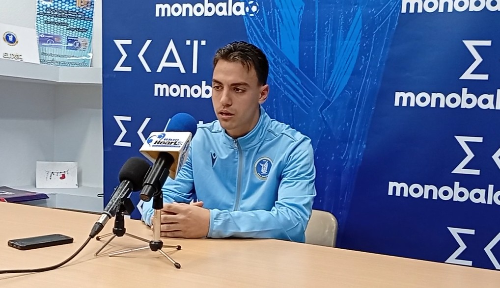 Τους παίκτες της Νίκης στη συνέντευξη Τύπου μετά το ματς με τον Διαγόρα Ρόδου εκπροσώπησε ο Χρήστος Κρυπαράκος, που χάρισε το τρίποντο με το φοβερό γκολ που πέτυχε στο 79’.