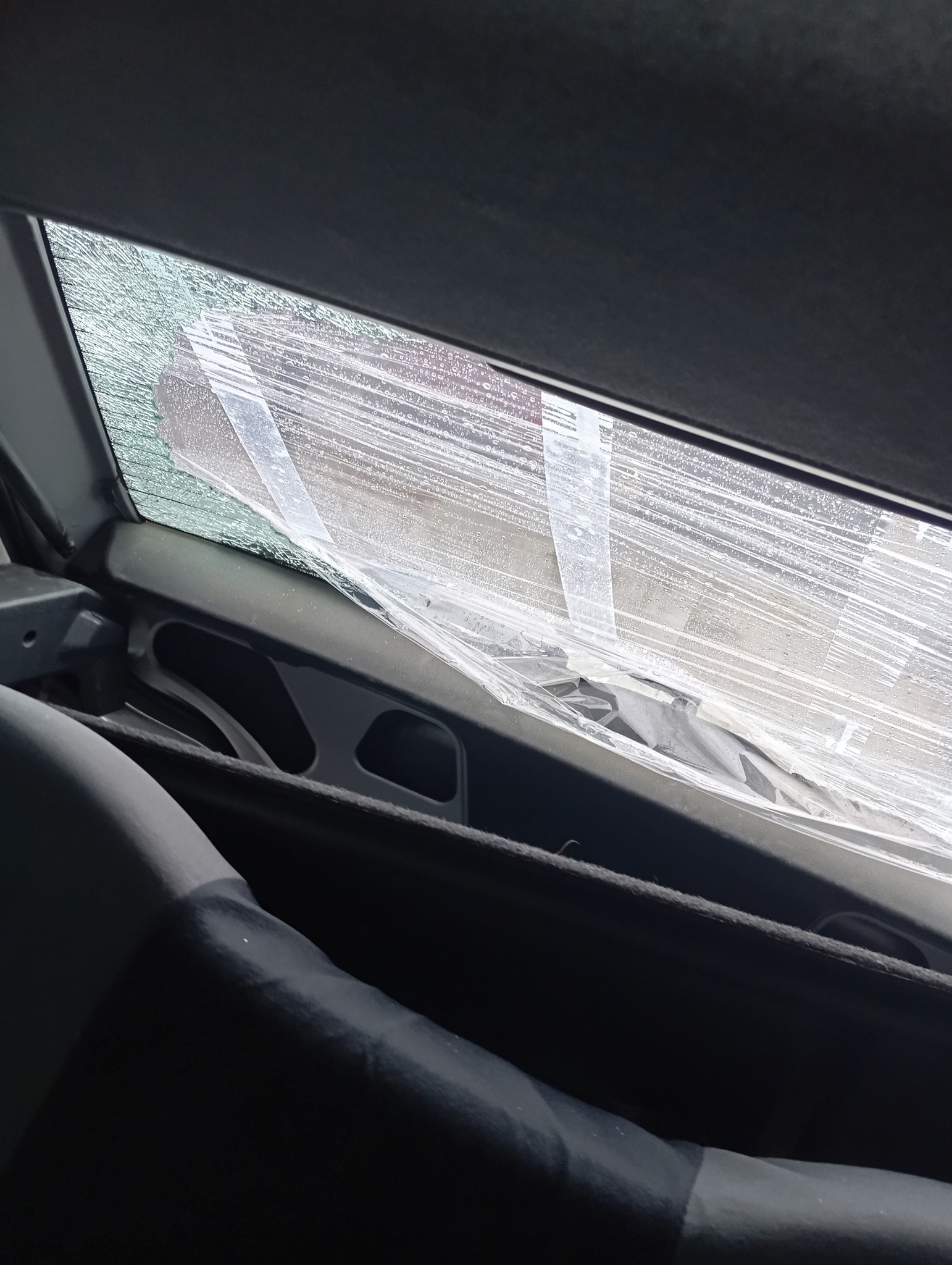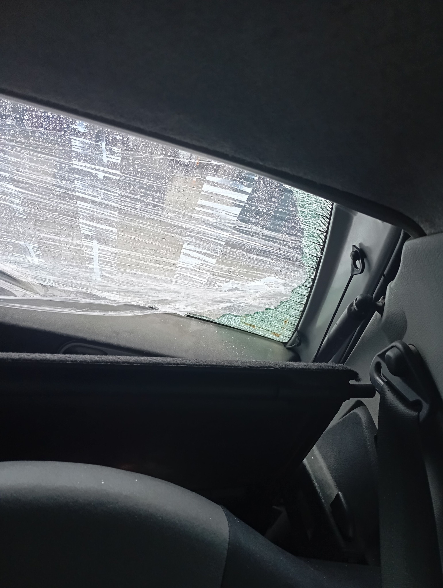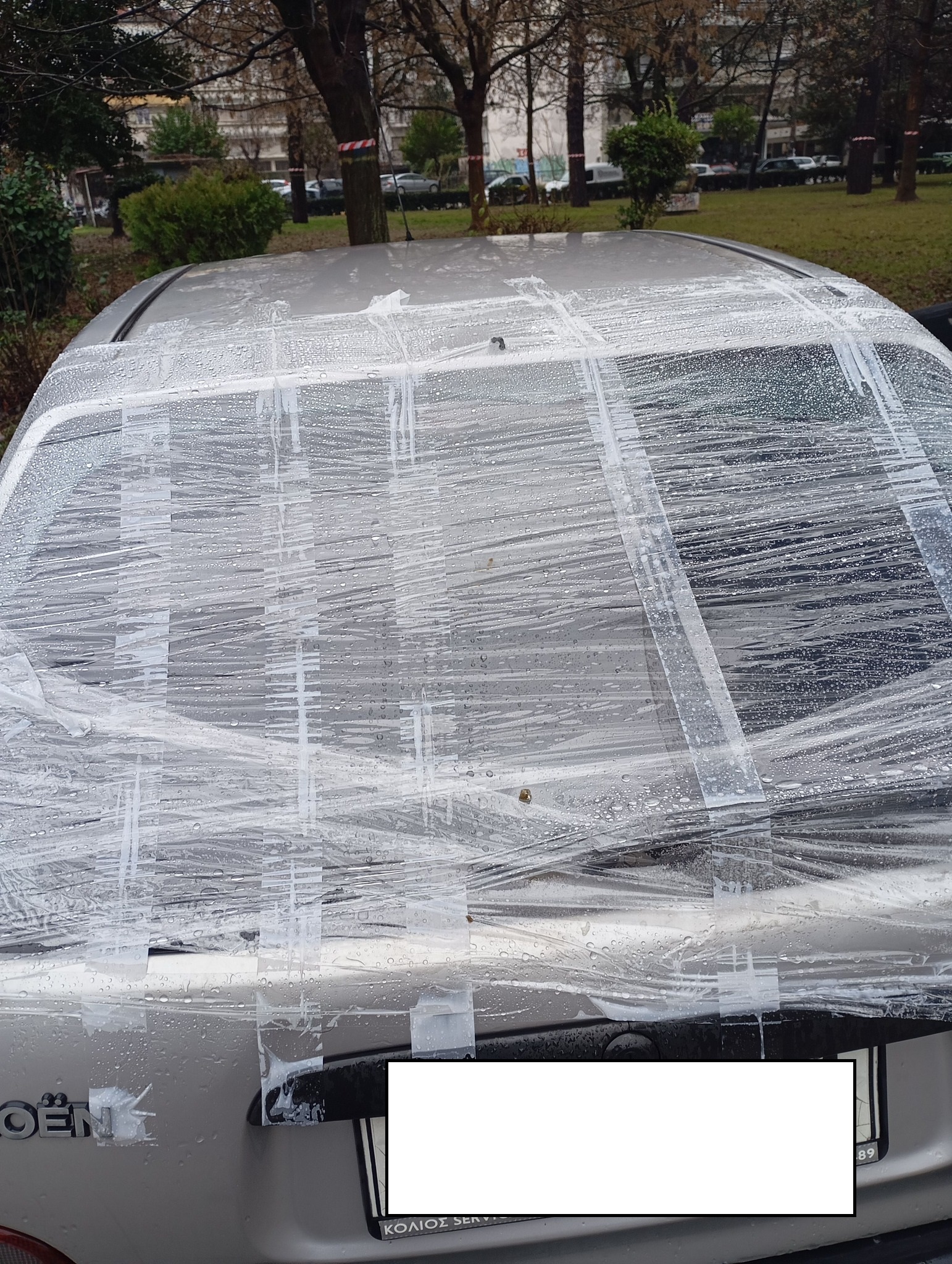 «Μάλλον τους πείραξε το κασκόλ της Νίκης Βόλου!!!» αναφέρει ο ίδιος δημοσιεύοντας φωτογραφίες από τα σπασμένα τζάμια του οχήματος που έχει αναγκαστεί να καλύψει πρόχειρα με πλαστικό. Μάλιστα στις φωτογραφίες εμφανίζεται και το κασκόλ της Νίκης, ο Καρδιτσιώτης πρώην ποδοσφαιριστής και νυν προπονητής.