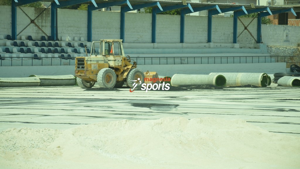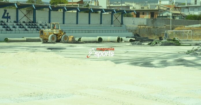 Σε πρώτη φάση δημιουργείται η κατάλληλη υποδομή, για να υποδεχθεί τον έτοιμο φυσικό χλοοτάπητα, ενώ ξηλώθηκαν ακόμη και τα τέρματα. Επίσης, θα μείνει πίσω από τις τέσσερις γραμμές ο πλαστικός τάπητας.