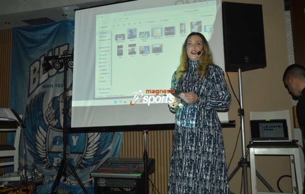 Ο Αγγελος Αργύρης έκανε παράκληση μεταξύ σοβαρού και αστείου στον πρόεδρο του Blue Club, Παντελή Μαστρογιάννη, για μεγαλύτερη αίθουσα, και ευχήθηκε ο εορτασμός φέτος των 100 χρόνων της ομάδας να τη βρει στη μεγάλη κατηγορία, συμπληρώνοντας: «Εμείς το ζήσαμε και θα έχουμε να το λέμε για πάντα. Χρειάζεται υπομονή, μπήκαμε στα πλέι οφ τελευταίοι και η ομάδα πήρε το πρωτάθλημα».