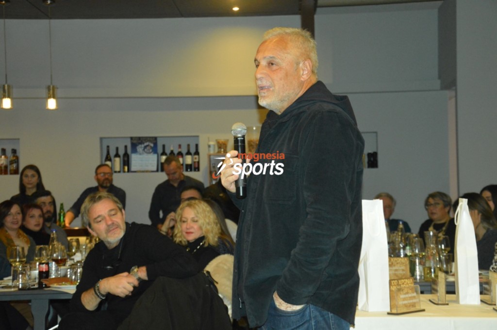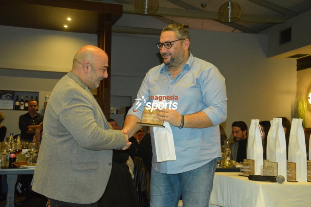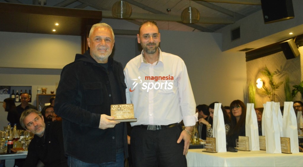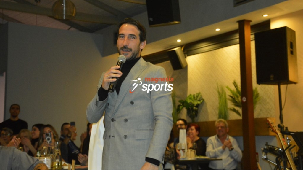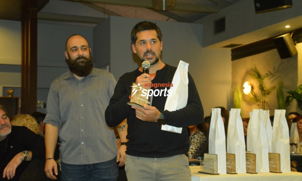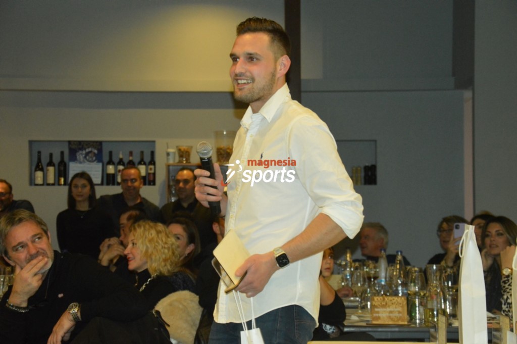 «Είναι μεγάλη τιμή να βρίσκομαι μαζί μας. Δεν έχω λέξεις να εκφράσω αυτό που νιώθω. Η Νίκη Βόλου και όλος ο κόσμος της Νέας Ιωνίας είναι για μένα το πιο ωραίο πράγμα στη ζωή μου. Θέλω να ευχαριστήσω για όλη την αγάπη που μου έχει δείξει, δε θα το ξεχάσω ποτέ, θα ήθελα να αφιερώσω αυτό βραβείο στην οικογένειά μου και στη γυναίκα μου, αλλά και στον Αχιλλέα (σ.σ. Θεοχάρης, που είναι ο κουμπάρος του). Θα είστε μέσα στην καρδιά μου για πάντα».