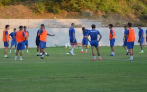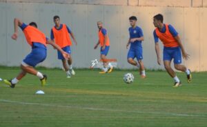 Οι ποδοσφαιριστές στο τέλος της προπόνησης έπαιξαν διπλό κι όχι σε όλο το γήπεδο, αλλά στη μία πλευρά υπήρχαν τρία μικροσκοπικά τέρματα, όπου θα μπορούσε να σκοράρει η μία ομάδα και στην άλλη φυσικά κανονική εστία.
