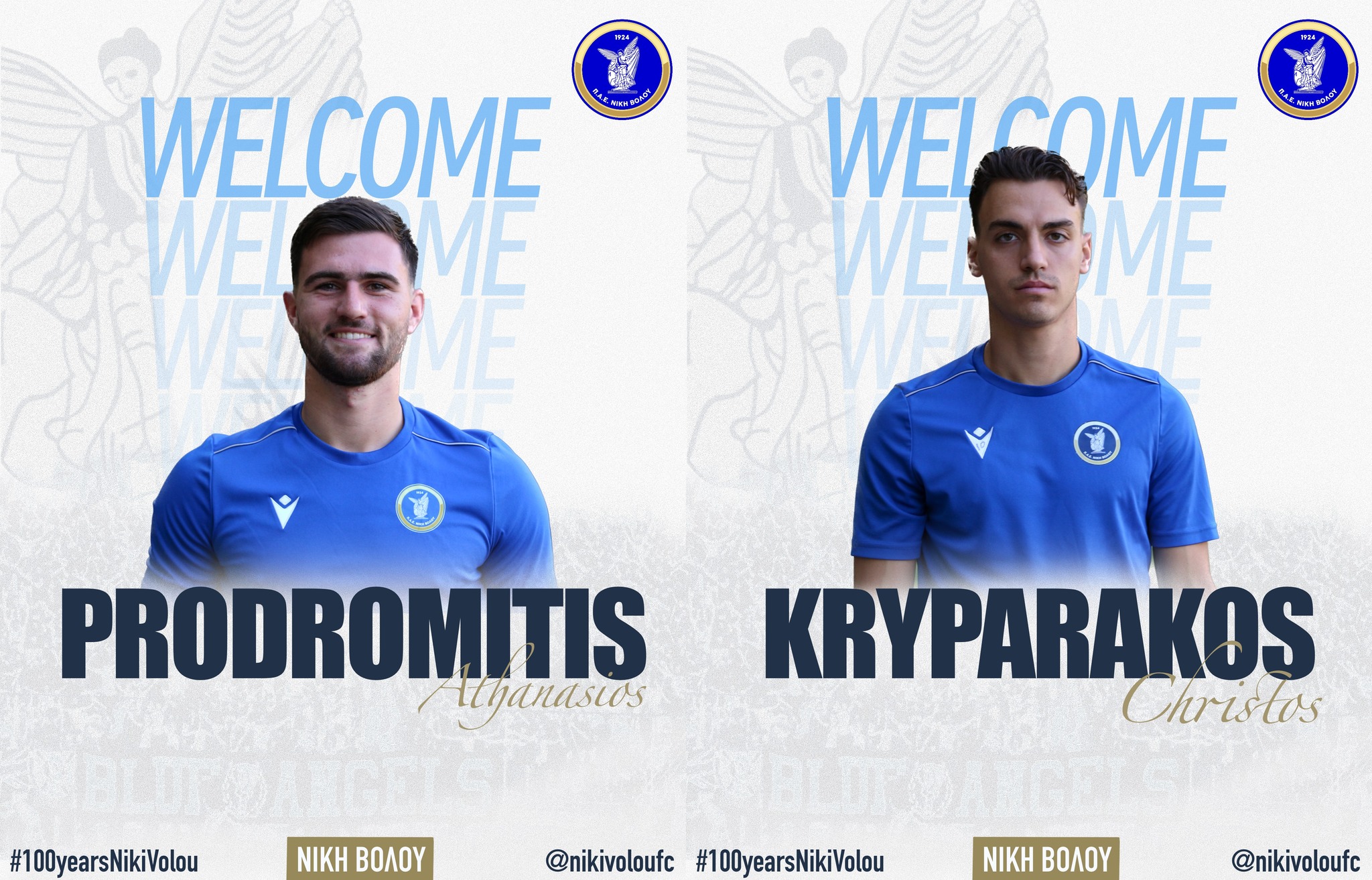 Αναλυτικά: «Η διοίκηση της ΠΑΕ Νίκη Βόλου ανακοινώνει με ιδιαίτερη χαρά την απόκτηση του Χρήστου Κρυπαράκου, αλλά και του Θανάση Προδρομίτη με τη μορφή δανεισμού από την ΠΑΕ Παναθηναϊκός.