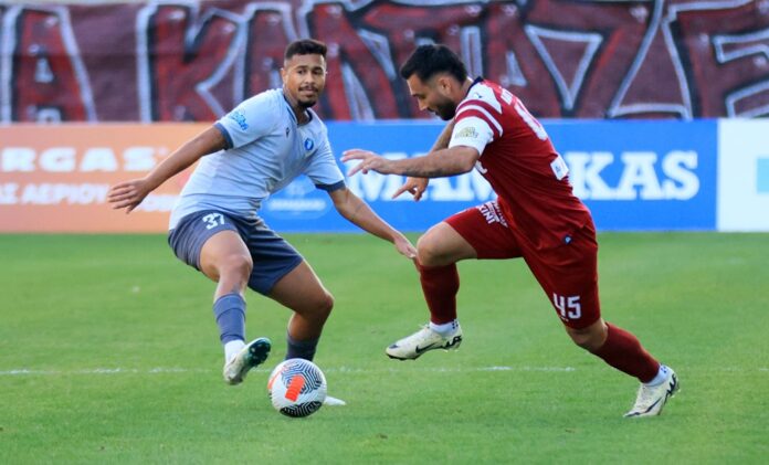 31’ τελείως άστοχη η κεφαλιά του Μωραΐτη στο πίσω δοκάρι μετά τη σέντρα του Μούργου