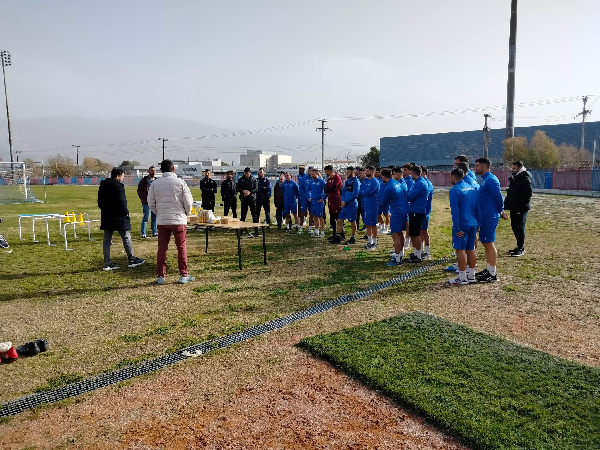 Παρουσία του μεγαλομετόχου της ΠΑΕ, Αλέξη Παπακωνσταντίνου, του αντιπροέδρου Βασίλη Βενέτη και του γενικού διευθυντή της, Ανδρέα Κικίλια, πραγματοποιήθηκε σήμερα πριν την προπόνηση στη Νεάπολη, η κοπή της πρωτοχρονιάτικης πίτας.