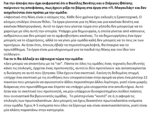 Ο Βασίλης Βενέτης, αντιπρόεδρος της ΠΑΕ Νίκη Βόλου, μίλησε εκ νέου στην εκπομπή «Λάσπες Μπλε» του Blue Heart Fm 105.1 και επιβεβαίωσε ότι βρίσκονται πολύ κοντά σε συμφωνία με έναν νέο προπονητή, ενώ παραδέχθηκε ότι οι επιλογές που έχουν γίνει από την αρχή της χρονιάς προφανώς δε βγήκαν, αναλαμβάνοντας την ευθύνη, παρόλ’ αυτά διέψευσε οποιαδήποτε καταγγελία για την οργάνωση και την οικονομική διαχείριση της ομάδας.