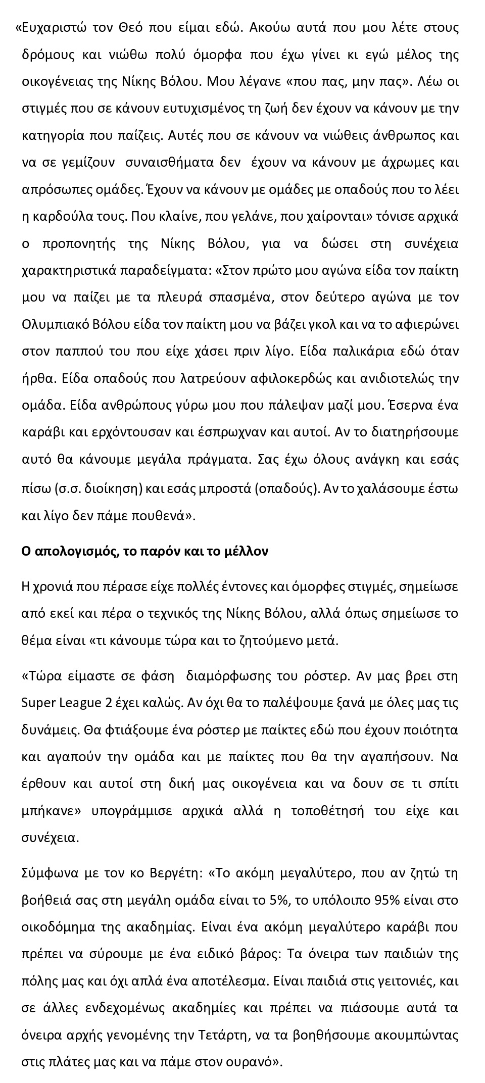 Με τον Στάικο Βεργέτη να έχει ανανεώσει τη συνεργασία του με τη Νίκη Βόλου για τα επόμενα δύο χρόνια, ήταν φυσικό να κλέψει μεγάλο μέρος του ενδιαφέροντος στην ενημερωτική εκδήλωση που πραγματοποίησε σήμερα η Νίκη Βόλου για τους εν δυνάμει μετόχους της. Ο ίδιος μάλιστα ευχαρίστησε τον Θεό που είναι μέλος της οικογένειας της Νίκης, αλλά στάθηκε τόσο στο παρόν της ανδρικής ομάδας, όσο και στο μέλλον των ακαδημιών και του οργανισμού που ακούει στο όνομα «Νίκη Βόλου».