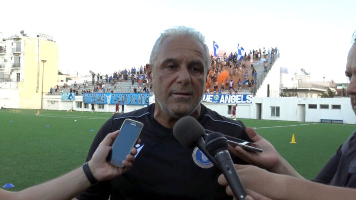 Μια καινούρια χρονιά με πολλή αισιοδοξία. Όλο αυτό είναι υπέροχο (η παρουσία των φιλάθλων) Ευχαριστούμε τον κόσμο που ήρθε στην πρώτη να μας στηρίξει. Δείχνει ξεκάθαρα ότι θα είναι κοντά μας. Με βάση την περυσινή χρονιά, ξεκινάμε μια χρονιά στην οποία δεν ξέρουμε ακόμη τι θα βρούμε μπροστά μας. Η κατηγορία έχει πρόβλημα . Δεν ξέρουμε ποιες ομάδες θα συμμετέχουν. Αυτά είναι πράγματα που πρέπει να τα ξεπεράσουμε και να κάνουμε ένα κύκλο προπονήσεων, ούτως ώστε όταν ξεκινήσουμε να είμαστε όπως πρέπει. Ας ευχηθούμε τα προβλήματα σ’ αυτή την κατηγορία να τελειώσουν. Να ευχαριστήσω την διοίκηση που έκανε ότι ζήτησα. Πολλοί καλοί παίχτες ήρθαν, πολλά παιδιά κρατήθηκαν από την περυσινή χρονιά . είχαμε μια πολύ καλή βάση. Πετύχαμε μια πολύ καλή θέση. Πιστεύω ότι η φετινή χρονιά θα μας βρει να είμαστε πολύ πιο ψηλά από τη θέση που πετύχαμε . Δεν χρειάζονται μεγάλα λόγια, αλλά σίγουρα είμαστε μια ομάδα που θα διεκδικήσει το καλύτερο δυνατό. Πιο πάνω θέσεις απ΄ότι είχαμε πέρυσι και είμαι σίγουρος με την ενίσχυση και τη βοήθεια όλων να διεκδικήσει μέχρι το τέλος αυτό που πετύχαμε το 2013-14. Ας ευχηθούμε λοιπόν να είμαστε όλοι κοντά στην ομάδα, να υπάρχει συσπείρωση.