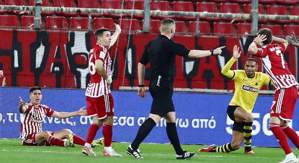 Στο ντέρμπι του Γ. Καραϊσκάκης, η ΑΕΚ πήρε το διπλό με 1-2, προηγούμενη με 0-2 με γκολ στο 32’ και στο 38’, όντας μέχρι τότε εμφανώς ανώτερη. Το γκολ του Μασούρα στο τέλος του πρώτου μέρους διαμόρφωσε το τελικό αποτέλεσμα. Ο Ολυμπιακός πάντως φωνάζει για πέναλτι στο 71’ του Κάλενς πάνω στον Ναβάρο, ενώ οι γηπεδούχοι διαμαρτυρήθηκαν ότι κακώς ακυρώθηκε το γκολ του Μασούρα στο 67’ για φάουλ του Ελληνα εξτρέμ λόγω κοντρόλ με το χέρι, πριν εκτελέσει.