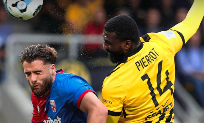 Όμως η ΑΕΚ ήταν αυτή που βρήκε αντεπίθεση και σκόραρε. Οι φιλοξενούμενοι προσπάθησαν να πάρουν μέτρα προς την περιοχή του Στρακόσα, οι παίκτες της ΑΕΚ έκλεψαν και ο Μάνταλος πέταξε τη μπάλα στον κενό χώρο για τον Ελίασον. Ο Σουηδός έβγαλε μια χαμηλή σέντρα στην «καρδιά» της περιοχής και ο Πιερό με κεφαλιά-ψαράκι άνοιξε το σκορ στο 54΄.