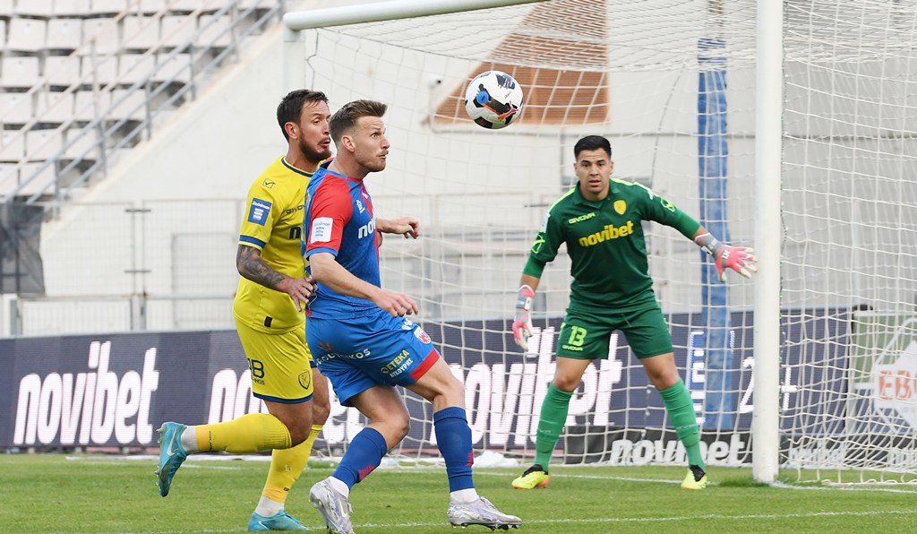 Μόλις στο 2′, οι φιλοξενούμενοι κέρδισαν πέναλτι για φερόμενο μαρκάρισμα του Καλογερόπουλου στον Τεττέι, όμως η υπόδειξη του διαιτητή ακυρώθηκε μετά από παρέμβαση του VAR.